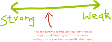 - In more clear way we can say that the programming language is strongly typed if it does not allows to define a variable with a data type, we can take and example of c, in which whenever we declare a variable we need to specify its data type also e.g.: int a, char b, but some other languages are loosely typed as we can just give var a, or $var which can hold any data type assigned.